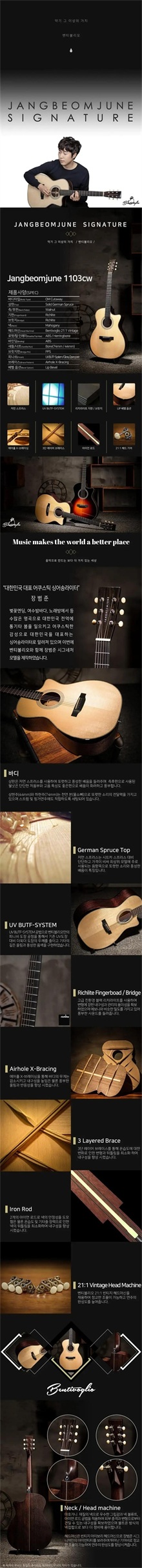 ● 本蒂奥 J1103 吉他⁂Jang Beom-Iune 签名款⁂面单吉他⁂韩国 Fingerstyle 神器⁂2280 元