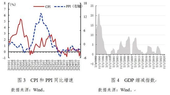 第二,CPI、PPI双负,需求不足问题仍需重视。一季度我国CPI较上年同期下降0.1%,就实现“两会”2%的目标仍显不足。同时,受国际输入性因素、煤炭等能源需求季节性因素影响,一季度我国PPI继续下降,但相比2024年第四季度降势有所放缓(见图3)。物价下行压力对名义经济增长的拖累效应依然存在,一季度GDP缩减指数累计同比为-0.77%,自2023年二季度起连续八个季度为负(见图4),有效需求不足仍是经济复苏的主要掣肘。