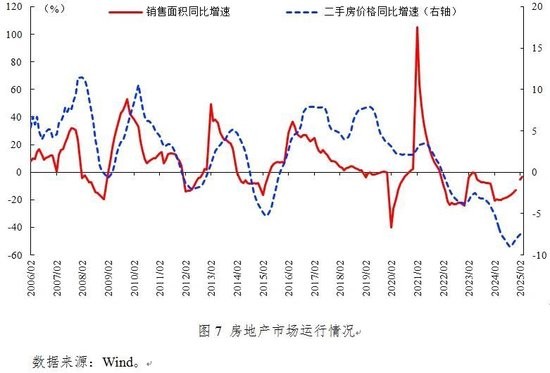第二,核心矛盾与风险点。一是需求不足拖累物价。2025年一季度我国CPI同比下滑0.1%,PPI同比降幅收窄但仍负增长,GDP缩减指数连续八个季度为负(-0.77%)。消费疲弱仍为物价回升的核心掣肘。二是未来出口存在隐忧。一季度我国出口增长6.9%,但在国际经贸斗争下对美出口或大幅下降,其中机械电子等产业承压显著。受此影响,国际机构普遍下调中国2025年GDP预期0.5个百分点。