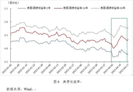 第二,美国国债期限收益率曲线更趋陡峭。长端美债利率综合反映了经济增长、通胀和流动性预期。如前所述,美国“对等关税”政策可能导致国内通胀预期显著上行,削弱了长期国债的实际收益率,且使市场对美国经济前景的担忧增加,投资者对长期经济增长预期较为悲观,进一步减少了对长期国债的需求,带动长端收益率的上行。相较而言,短端国债则更多反映流动性。在当前市场不确定性增加的情况下,投资者更倾向于持有流动性更好的短期国债,以规避长期国债的久期风险和利率风险,导致短端收益率下行。二者综合作用可能使得美国国债的期限结构分化更加明显。