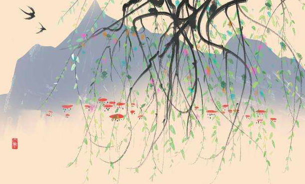 15、池上碧苔三四点,叶底黄鹂一两声,日长飞絮轻。巧笑东邻女伴,采桑径里逢迎。