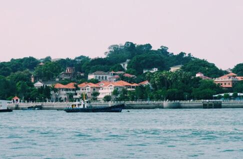 6、船,在海面上摇摇晃晃的驶向那岛,暖暖的海风吹拂着脸颊,岸边的景物尽收眼底,鼓浪屿犹如是镶嵌在东海之中的一颗璀璨的珍珠
