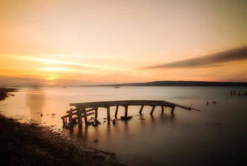 65、天空被斜阳染成了血红色,桃红色的云彩倒映在流水上,整个江面变成了紫色,天边好像燃起大火。