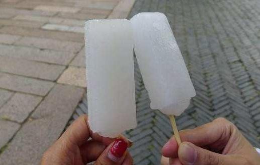 小时候口渴的时候,最喜欢吃的就是这种盐水冰棒了。对它的怀念,甚至比后来的老冰棍来得更加贴切!小时候只听妈妈说过,运动完之后会流很多汗,然后补充一点盐水,就对身体有好处。于是每次体育课跑完步,都会来一根盐水冰棒,那感觉,简直不要太爽!