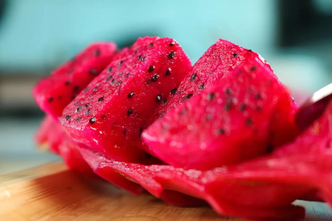 红心火龙果的唯美句子 :口感清新,甜而不腻,每一口都饱含汁水