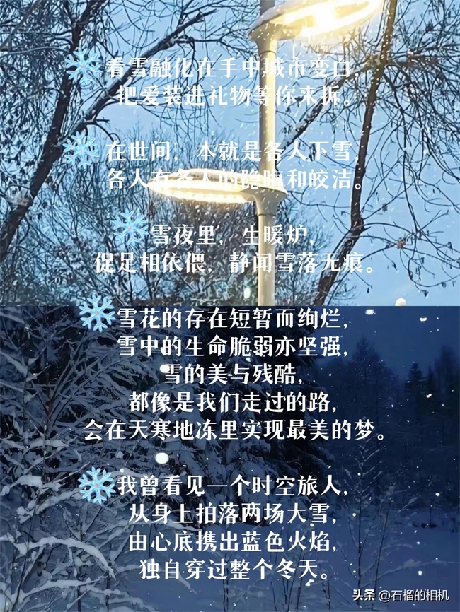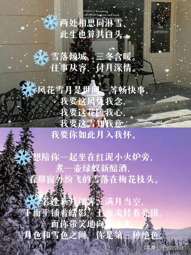- 赞美雪的句子简短(下雪天朋友圈唯美说说)