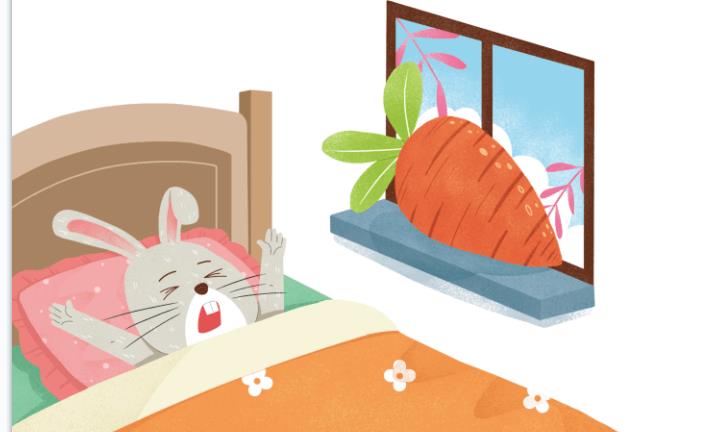 小鹿来到小白兔家,从窗口看到他睡得正香呢,就把大萝卜放在窗台上回去了。小白兔一觉醒来,发现窗台上放着一个大萝卜,心里想:咦!萝卜怎么回来啦?嗯,一定是我的好朋友送来的。