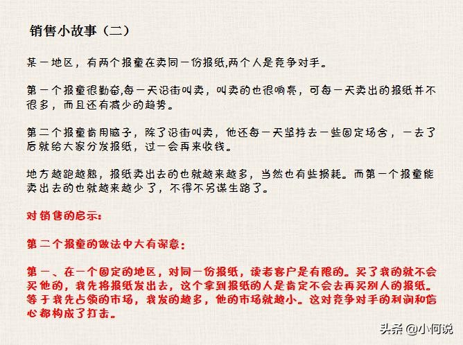 小故事,大智慧,销售看似简单,也有很多门道。我这边准备了5个销售故事,听说看懂2个销售故事的是销售精英,3个是老板,你能看懂几个呢?