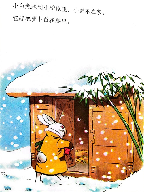 小动物都想着自己的朋友在天寒地冻的时候有没有吃的,都把萝卜送到朋友家,送了一圈又回到小白兔家。这是一本爱与分享的绘本,萝卜在传递的同时也传递着小动物们之间的友爱。冬天的天气虽然寒冷,但是收到萝卜的小动物们的心里都是暖暖的。