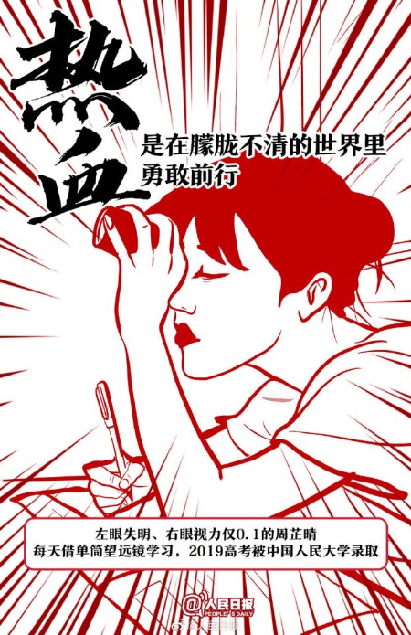 “微光女孩”周芷晴,借单筒望远镜学习,