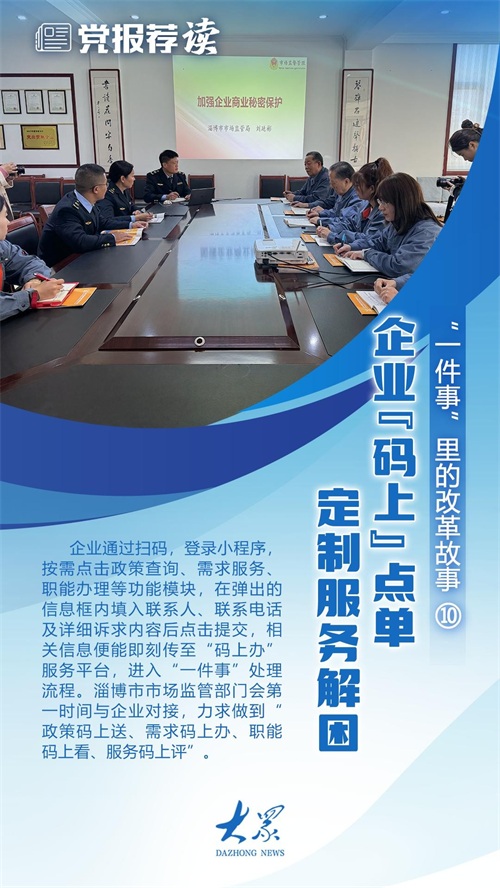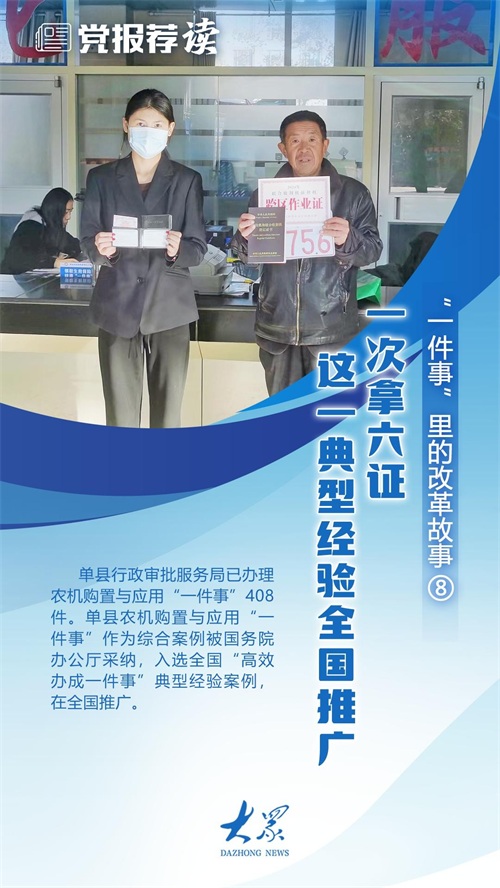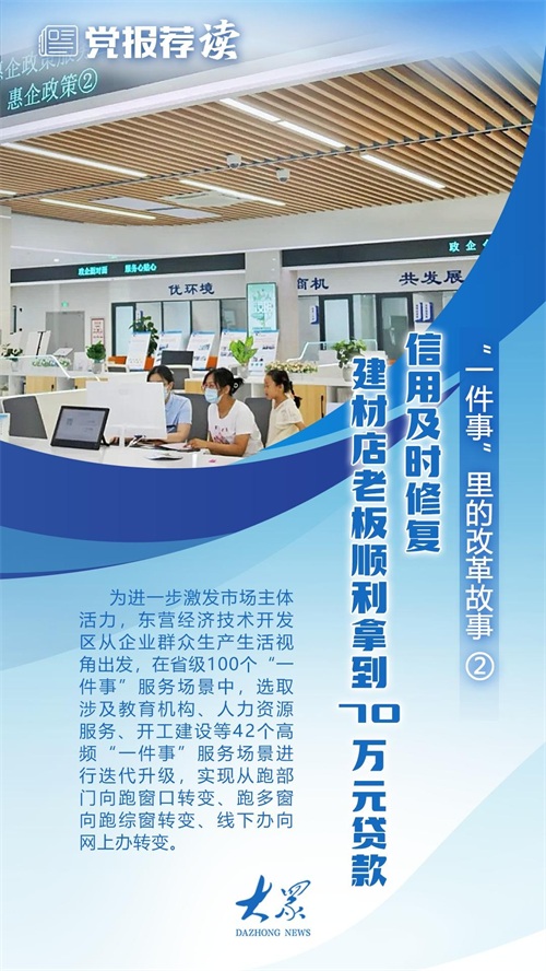 “高效办成一件事”是优化政务服务、提升行政效能的重要抓手。为进一步反映全面深化改革实践成效,大众新闻·大众日报推出“‘一件事’里的改革故事”系列报道,聚焦改革探索,坚持民生视角,从办事群众和企业的微观感受出发,关注各地各部门企业注销登记、信用修复、教育入学、残疾人服务、就医费用报销等领域的“一件事”改革,展现改革给企业、群众带来的获得感。