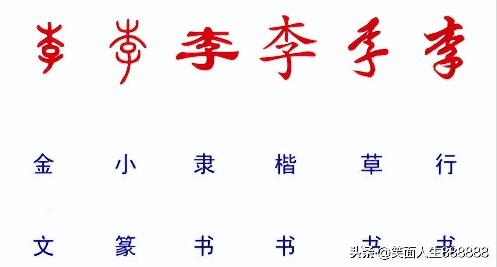 之后从甲骨文的李字逐步演变成现在的李字,下面是甲骨文之后各种字体的李字演变。