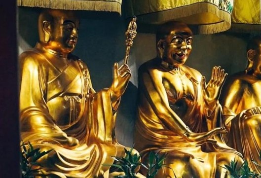 近几年台州市政府为了保护木质十八罗汉不受损,全部把十八罗汉木质造像刷成金色了。