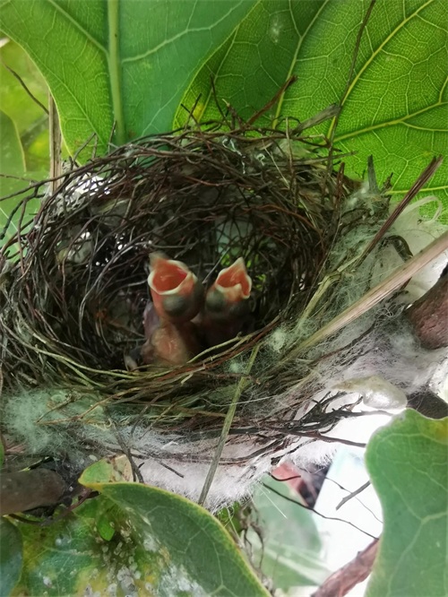 直到某一天我给花浇水时,蓦然发现我的花丛中多了一个鸟窝。。。好惊喜!