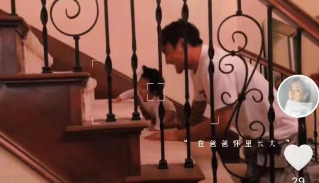 刁磊带女儿练习爬行,身为老父亲的他不忘跪在楼梯上亲自示范,见证女儿成长瞬间的刁磊脸上全程洋溢着幸福笑容。