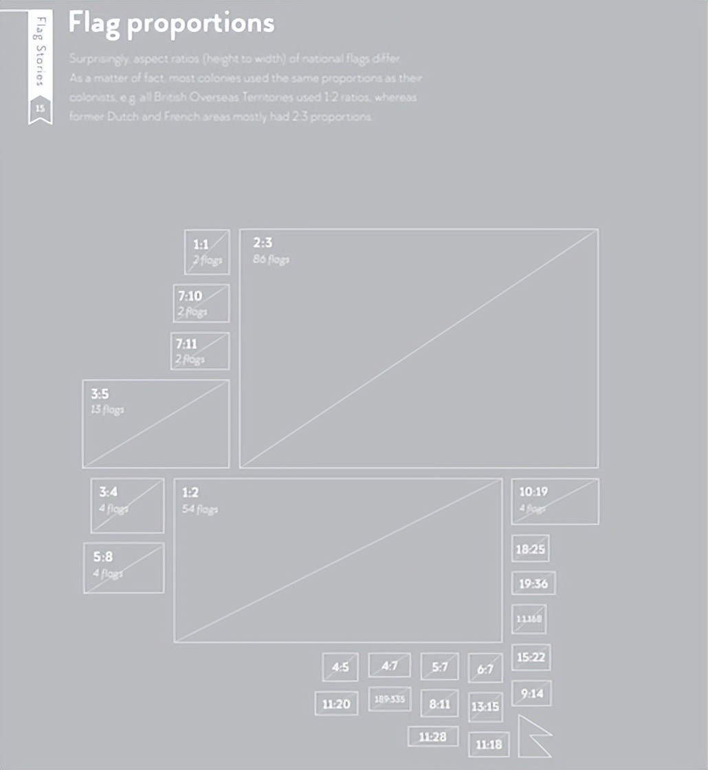 虽然矩形的国旗看上去差不多,但长宽比略有不同。例如,使用前英国殖民国家的旗帜为1:2,前荷兰法国领土旗帜和日本Hinomaru 是2:3矩形。还有不同比率的不同标志,例如3:4,5:8,189:335。