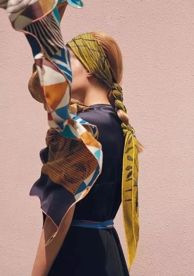 正是因为有多种规格,时尚潮人们甚至研究出了爱马仕丝巾的一万多种穿搭方法。可以用作头巾、围巾、发带、帽饰、披肩、包袋挂饰等等……永远有数不尽的搭配灵感。