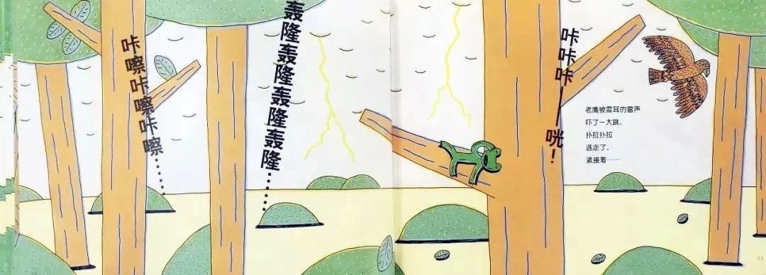 咔嚓咔嚓……轰隆轰隆……咔咔咔——咣!老鹰被震耳的雷声吓了一大跳,扑拉扑拉逃走了。紧接着——